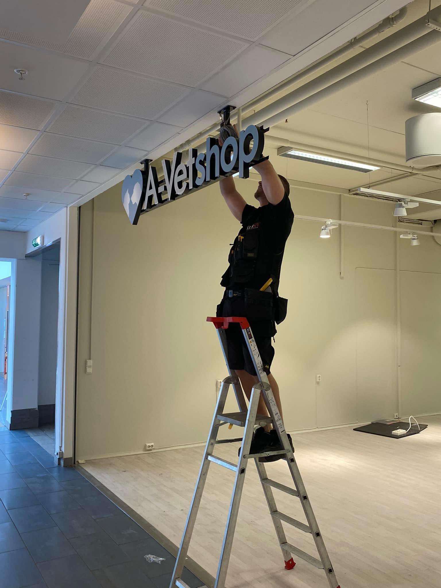 Vi leverer alt av utvendige og innvendige skilt, med og uten lys.
